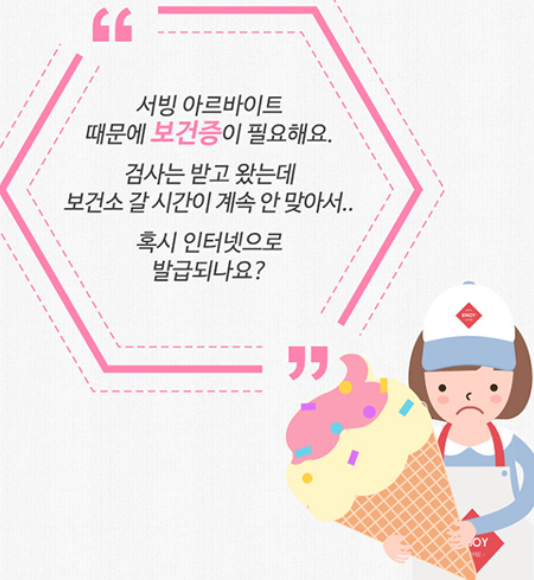 건강진단결과서를 미발급한 상태로 종사자를 고용하였거나, 일을 하였을 경우에는 과태료가 발생할 수 있습니다. 그러니 보건증을 필요로 하는 일을 하기 전에는 미리 발급받아 준비하시길 바랍니다.