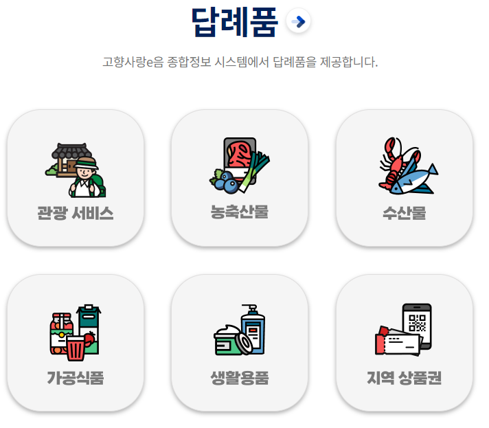 - 답례품 : 기부금의 30% 이내에서 제공 가능 (지역 다양한 특산품)