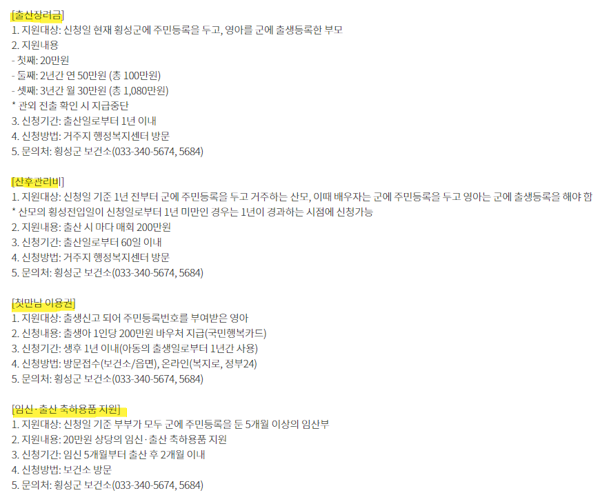 다자녀 혜택 1. 출산 축하금
