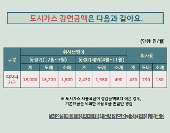 도시가스요금 할인 기준과 신청은 주소지 관할 주민센터나 일반도시가스사업자에서 신청할 수 있습니다.