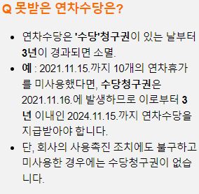 연차수당은 3년 안에 청구하지 않으면 소멸된다는 점을 꼭 기억하세요!