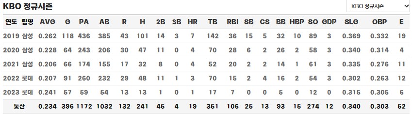 이학주 정규시즌 통산 기록