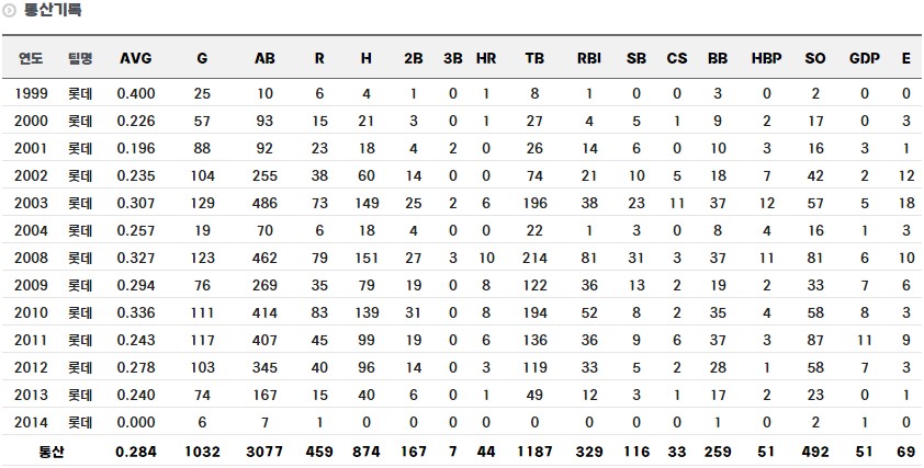 • 소속팀 : 1999 ~ 2014 롯데 자이언츠