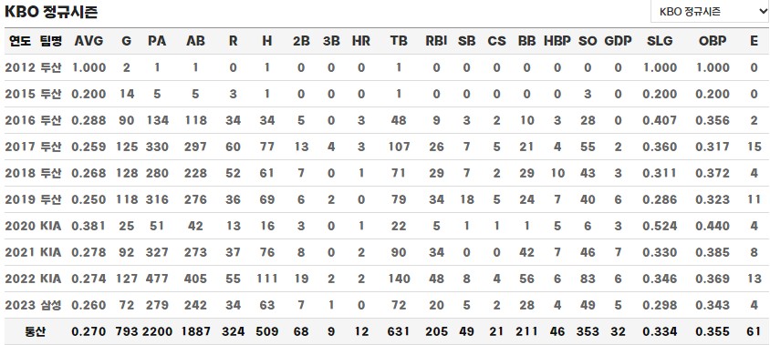 조성환 정규시즌 통산 기록