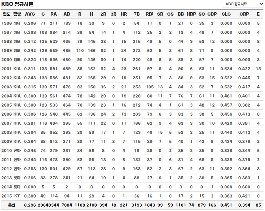 김주찬 정규시즌 통산 기록