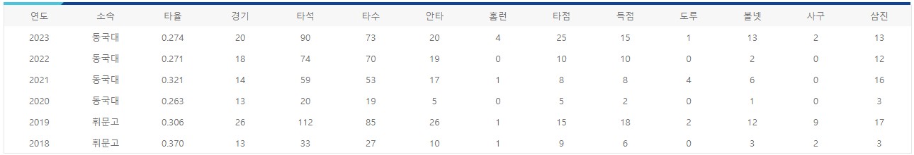 - 프로입단 : 24년 9라운드 삼성 라이온즈 지명
