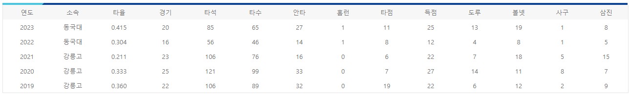 | 전국대학야구선수권대회 | 5회 (2006, 2013, 2014, 2016, 2023) |