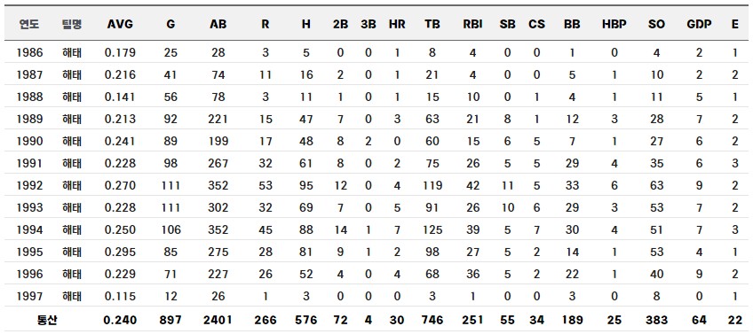 - 소속팀 : 1986 ~ 1997 해태 타이거즈
