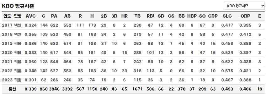 이정후 정규시즌 통산 기록