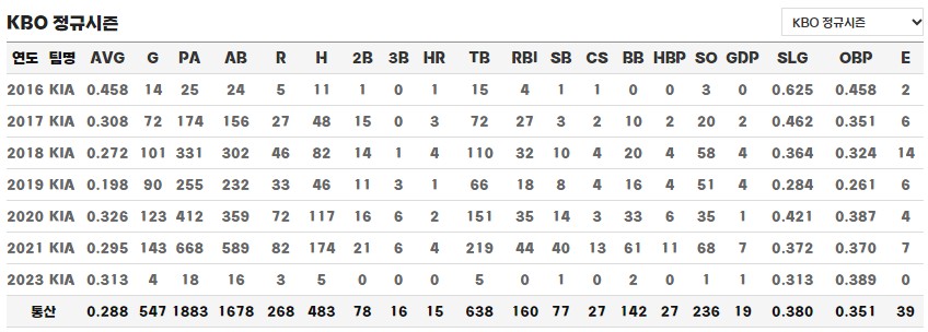 • 소속팀 : 2016 ~ KIA 타이거즈