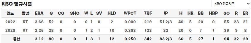 - 소속팀 : 2022 ~ KT wiz