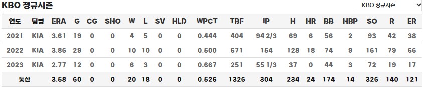 - 소속팀 : 2021 ~ KIA 타이거즈