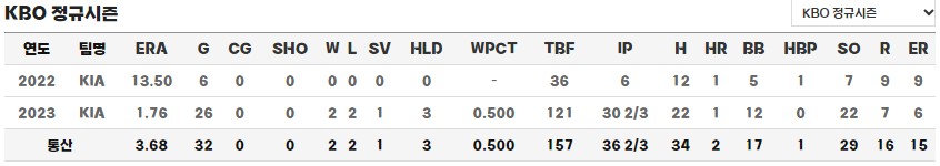 - 소속팀 : 2022 ~ KIA 타이거즈
